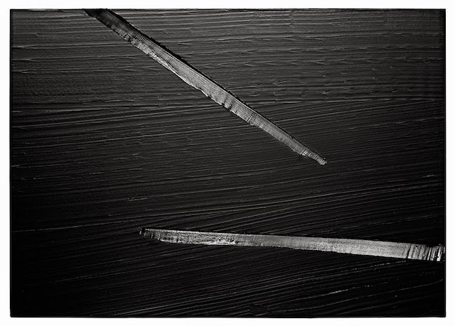 In the more recent works, Soulages has wholly gone black on black, with variations only in the texture, allowing for reflections of light that play off differently depending on where you look at them, like in this painting dated 2013: