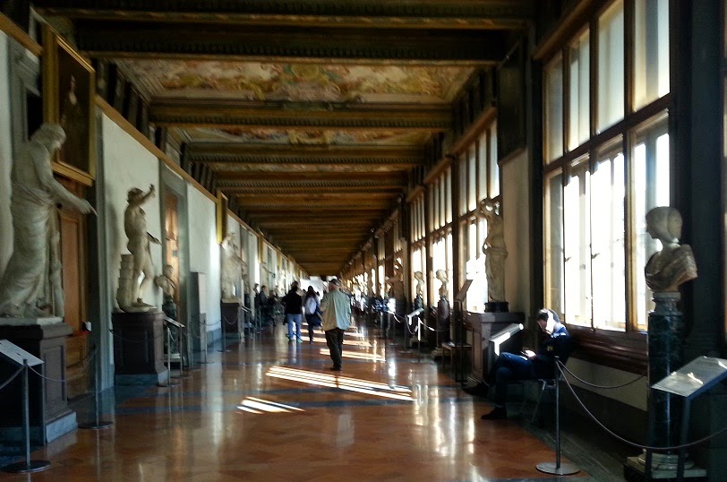 Next stop after the pharmacy: the Uffizi, restored back to the old splendor. The galleries full of sunshine are surely one of the more special places on earth: