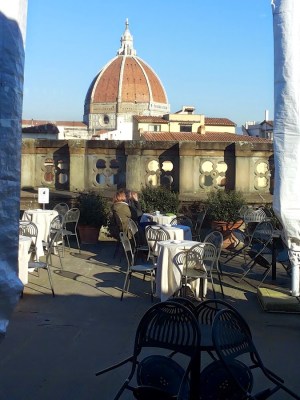 By now, time for lunch! The Uffizi terrace is the perfect place – with a unique back view of the Duomo: