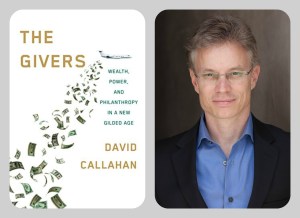David Callahan’s new book The Givers – Wealth, Power and Philanthropy in a New Gilded Age is the latest arrival on the scene and adds to the debate – philanthropy vs. democracy – carrying it forward with considerable new and updated material. Callahan has done his research for years, he has met many people in the industry, he has uncovered hard-to-find facts about the “opaque” world of philanthropy and the website he has been running, Inside Philanthropy, has been a major source of information ever since it was launched in 2014.